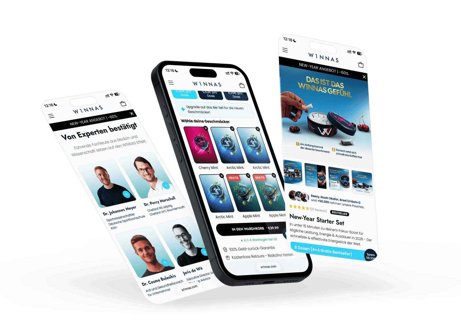 Durch kontinuierliches A/B Testing passen wir zusammen mit dem Team von W1NNAS den Shop immer weiter datenbasiert an, um die Performance stetig zu steigern.